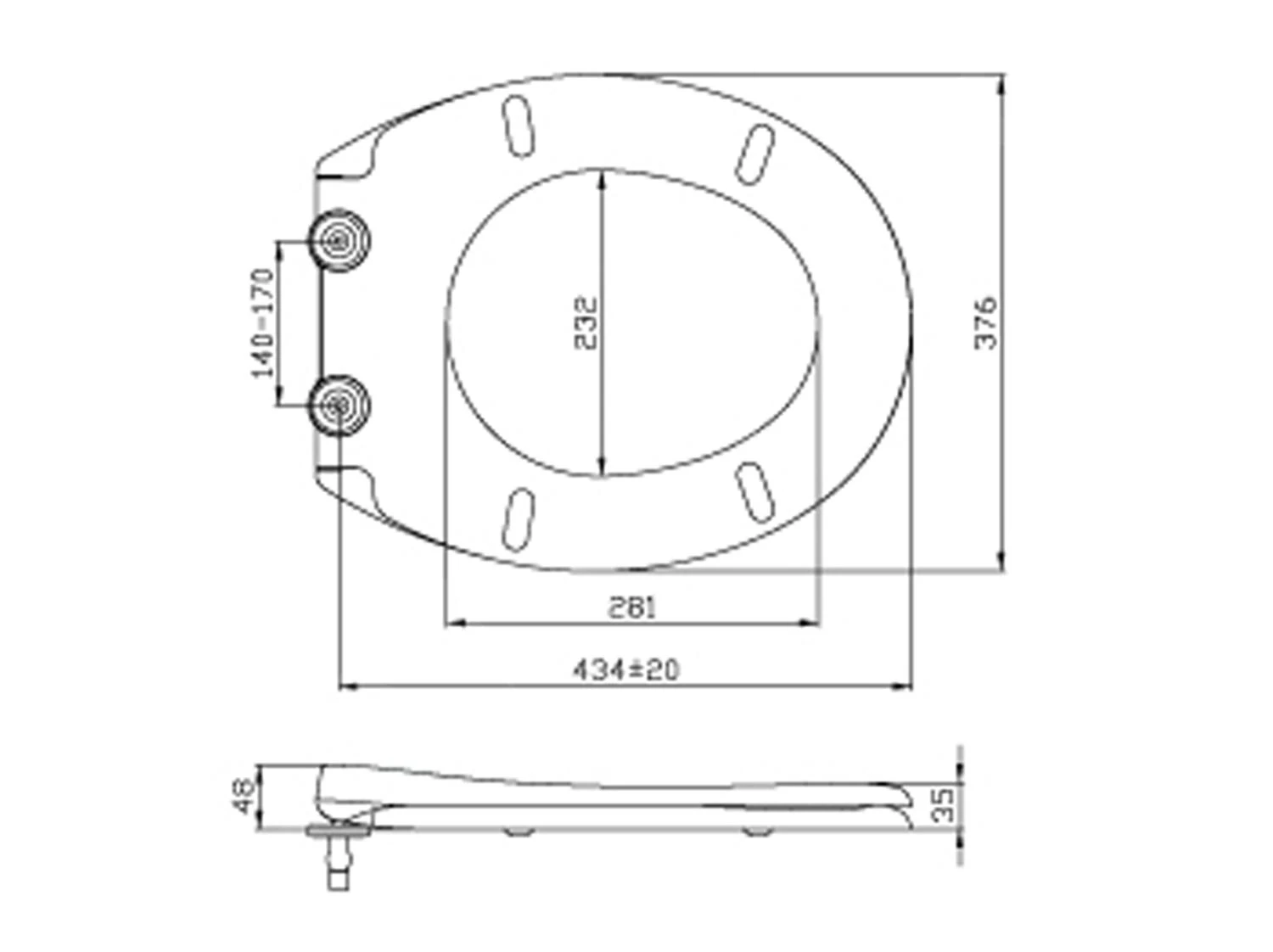 - Instelbare bevestigingsbeugels waarmee de zitting kan worden aangepast aan de grootte van de pot. De spanscharnier is geschikt voor een gangbare opening in de closetpot van Ø 14 mm