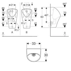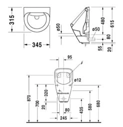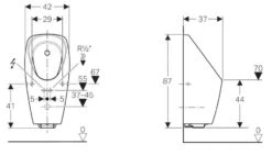 Deksel voor urinoir, toevoergarnituur en sifon 0051130000 worden niet meegeleverd, moeten apart worden besteld.